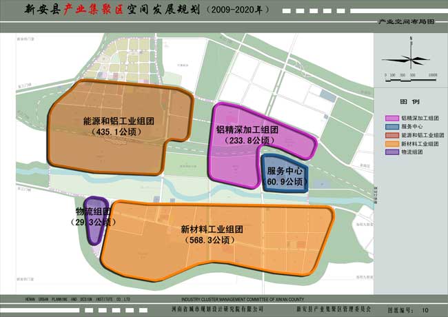 新安縣產(chǎn)業(yè)集聚區(qū)位于新安縣城西部,距縣城中心區(qū)約1公里,規(guī)劃總用地約17.8平方公里。主導(dǎo)產(chǎn)業(yè)選擇為鋁金屬精深加工產(chǎn)業(yè)和以鎂合金、鈦合金等為主的新材料產(chǎn)業(yè)。產(chǎn)業(yè)空間布局為“一心、四組團(tuán)”的總體空間格局?!耙恍摹睘榫C合服務(wù)中心,“四組團(tuán)”為能源和鋁工業(yè)組團(tuán)、鋁精深加工組團(tuán)、新材料工業(yè)組團(tuán)以及倉儲物流組團(tuán)。該區(qū)功能定位是:
